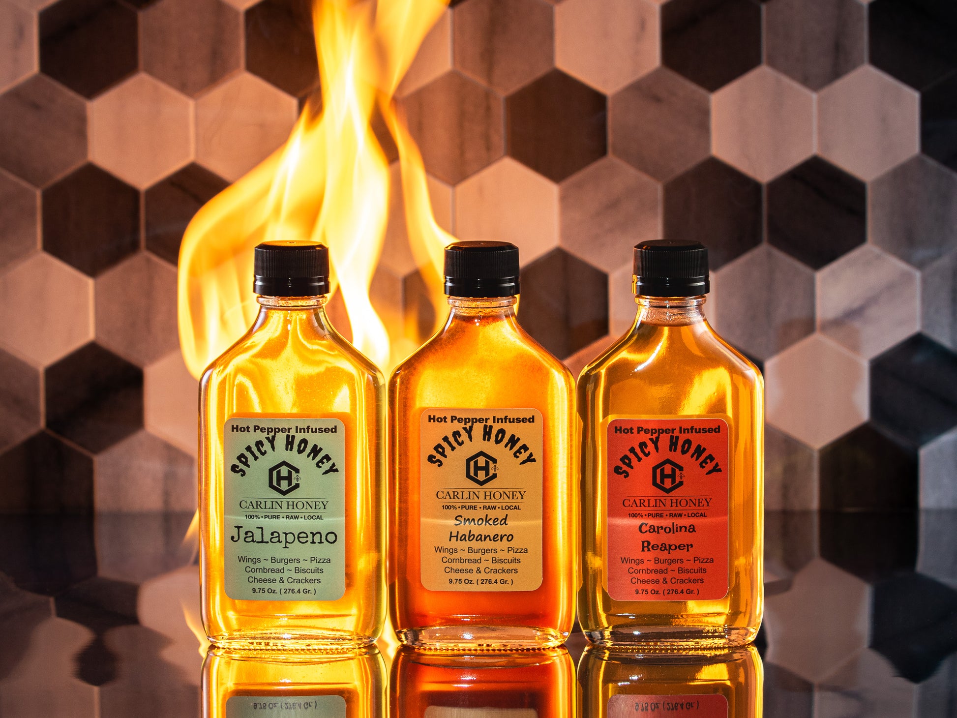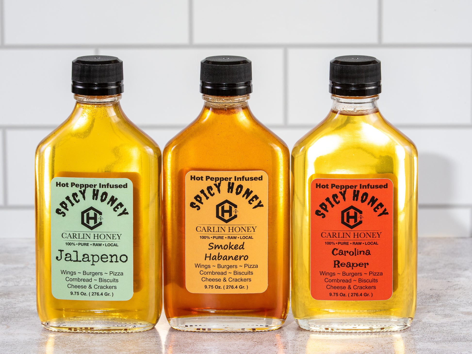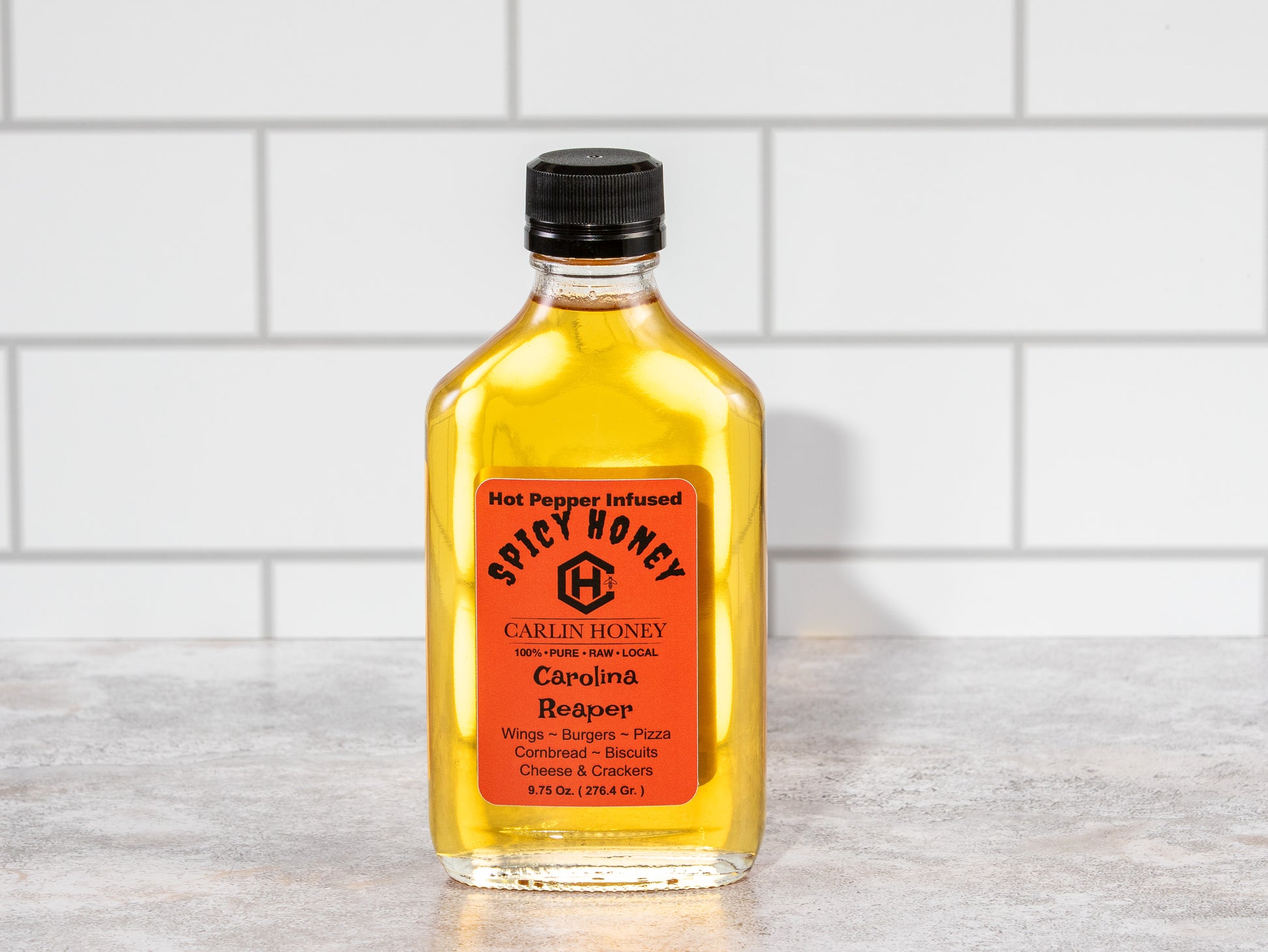 We start with our Pure Honey and add Artisanal Dried Hot Peppers. Gently warmed and steeped for weeks, the peppers' unique spicy flavor and sweet honey make for an intriguing combination! Once infused, the peppers are strained out and the final product bottled.